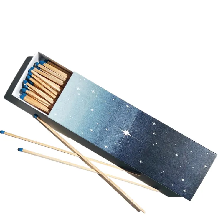 45 navy tipped matches in a water-color paint printed box with a black striker.