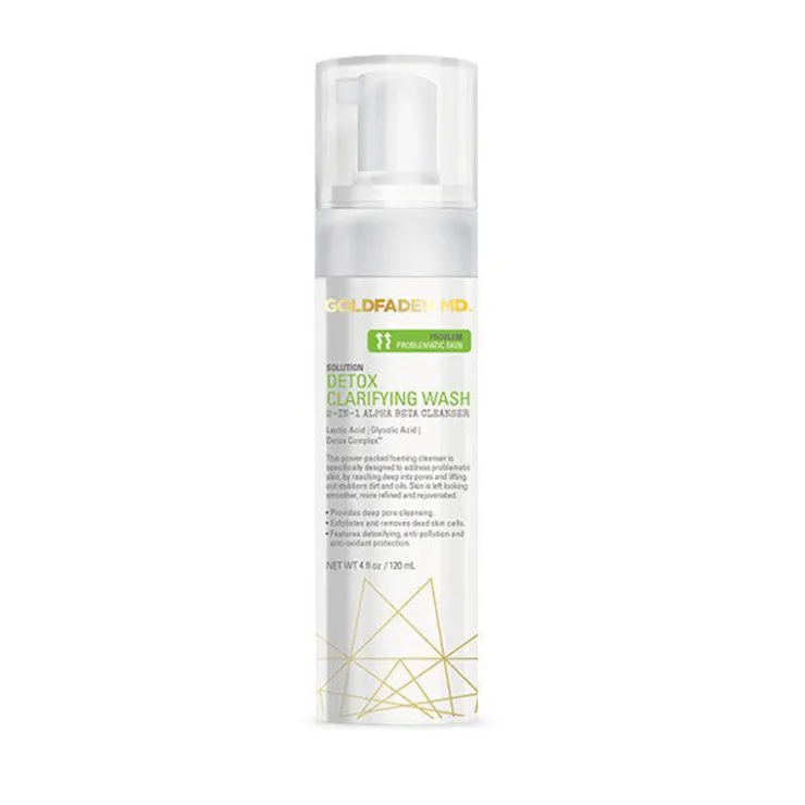 Massage one pump of foaming cleanser in circular motions on dampened skin. Rinse well and pat dry. Follow with appropriate Goldfaden MD treatment product.