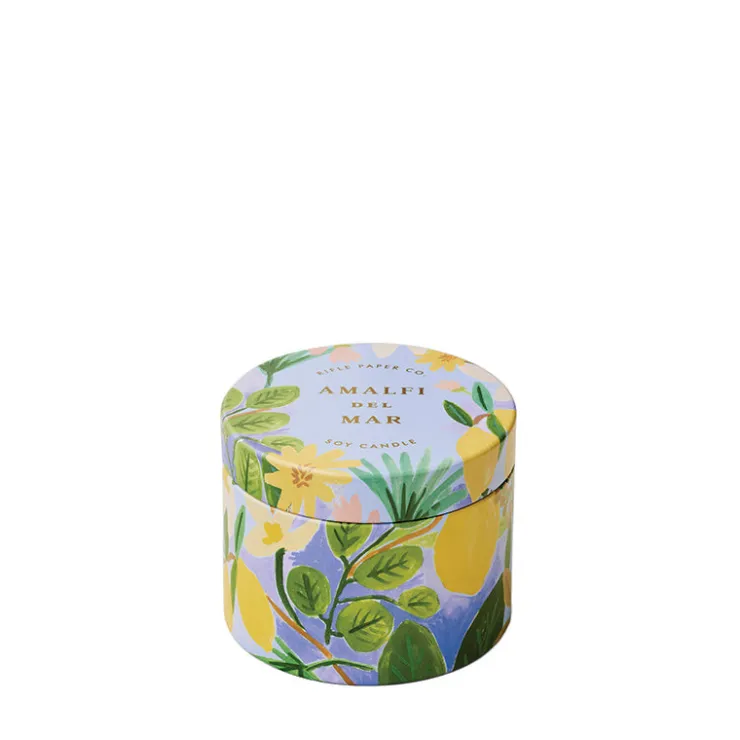 Amalfi del Mar is a blend of lemon, soothing eucalyptus, and the fresh scent of the sea rolling in underneath the cliffside villages along the famous Italian coastline. The 9.5oz soy wax candle comes in a painted glass vessel and is packaged in a decorative gift box with gold foil accents.