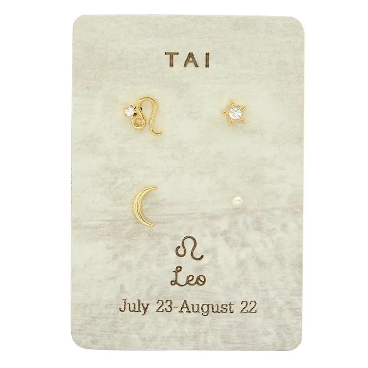 Mismatched stud pack that includes single zodiac sign stud, cz star, crescent moon and freshwater pearl studs