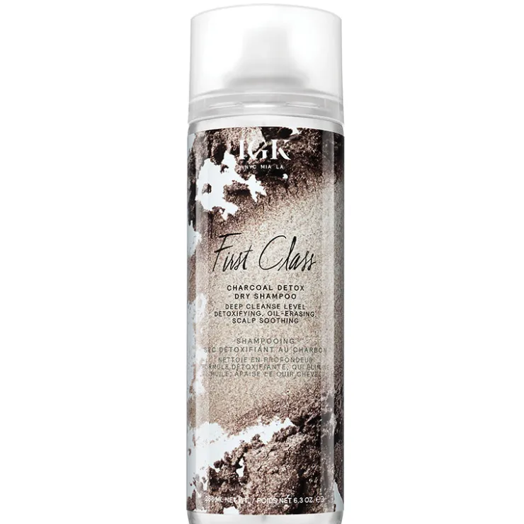 IGK First Class is a powerful dry shampoo that cleanses even the most oily hair and scalp with oil-erasing, odor-eliminating charcoal powder.