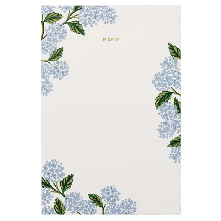 Graceful, blooming hydrangeas decorate this oversized notepad, which features 65 tear-off sheets and gold foil on every page.
