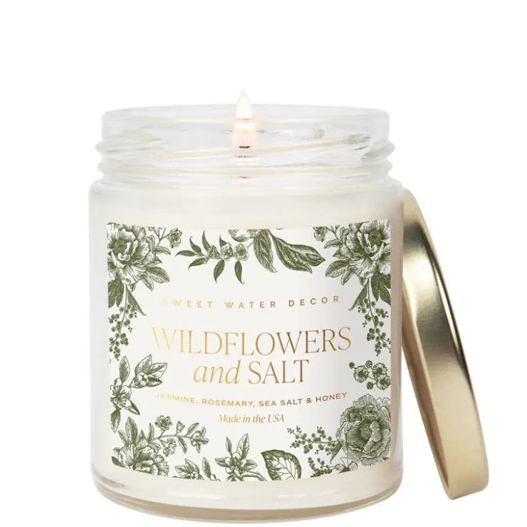 Bring the warmth and beauty of nature indoors with the Wildflowers and Salt soy candle. The natural floral scents of Jasmine, Lily, Geranium and Violet have a sweet, gentle scent that is combined to pure perfection. Blended with grounding leafy greens, salt, and amber scent notes, this complex floral candle will have your house smelling fresh and fragrant like a stroll through a field of wildflowers.