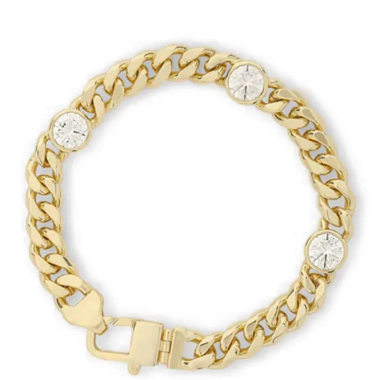 Chains + Diamonds = The Best of Both Worlds. The Julian Cuban Chain Bracelet becomes something even more dazzling when three bezel-set simulated diamonds are added to the mix. Why? Because no one has ever been disappointed by adding diamonds.