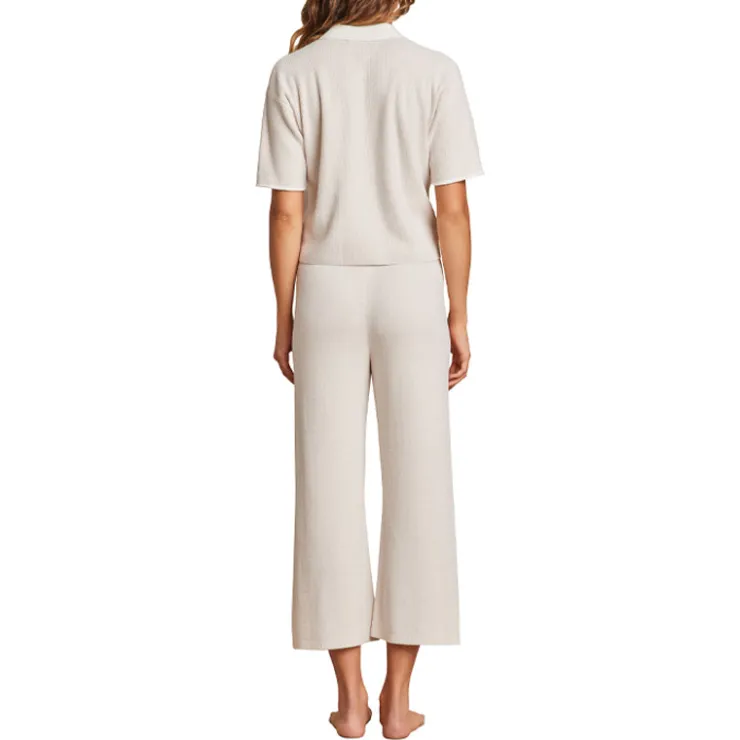 Designed with CozyChic Ultra Lite® material, this short-sleeved shirt offers both comfort and style. The relaxed fit and high hip length provide a flattering look, while the contrast color at the collar and jersey roll finish add a touch of sophistication. With an all over rib detail and front pocket, this shirt is both functional and fashionable. Complete the set with the Barefoot Dreams CozyChic Ultra Lite® Side Stripe Crop Pant.