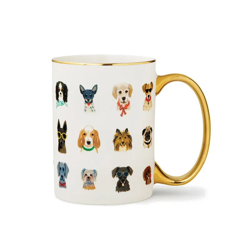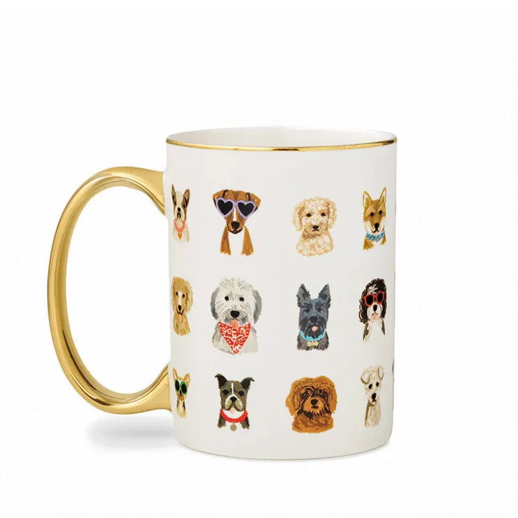 Loyal, loving, and looks good in sunglasses. Celebrate your favorite pup every morning with the Hot Dogs mug. Rifle Paper Co’s porcelain mugs feature illustrated designs and a gilded rim and handle to add a little something special to your favorite beverage.