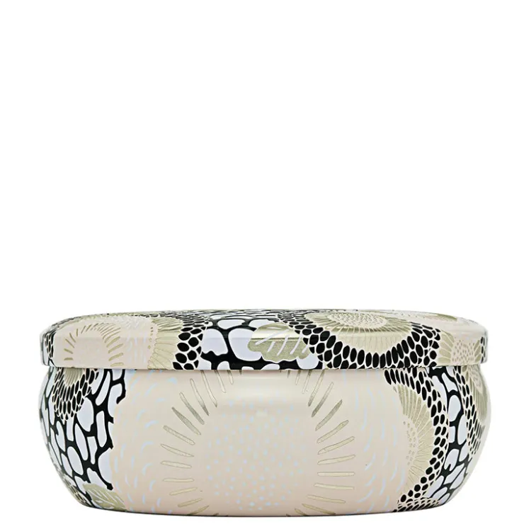 Voluspa’s unique coconut wax blend is hand-poured into a 12 oz. metal vessel adorned in Japonica pattern and topped with a matching lid that keeps the candle dust-free when not in use.