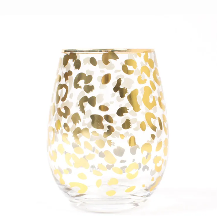 New 8 Oak Lane Stemless Wine Glass – Gold Leopard