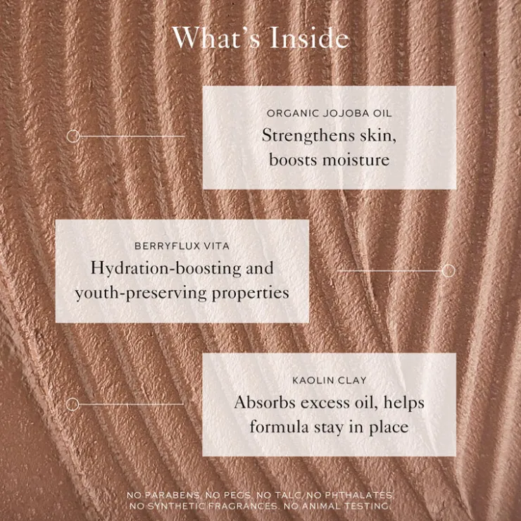 Caprylic/capric triglyceride, Kaolin, Caprylyl caprylate/caprate, Simmondsia chinensis (jojoba) seed oil, Polyethylene, Mica, Polyhydroxystearic acid, Lecithin, Behenylcarbamoylpropyl polysilsesquioxane, Tocopherol, Ascorbyl palmitate, Citric acid, Rubus idaeus leaf cell culture
