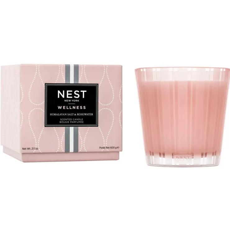 Ease your mind and soothe your spirit with this scented candle featuring notes of rosewater, geranium, salted amber, and white woods.