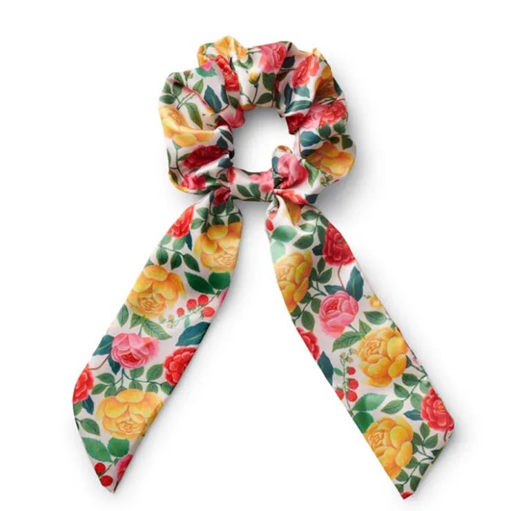 Perk up a ponytail or adorn your wrist. Rifle Paper’s Roses scrunchie features bold blooms and is made from a silky material with an extra-long scarf tie.