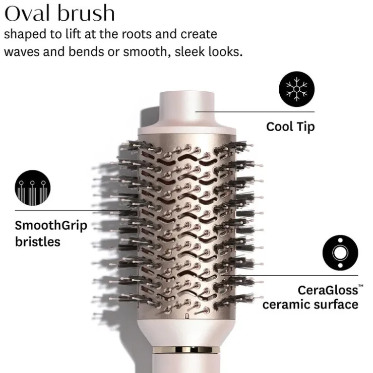- Cool tip: Stays cool to the touch for comfortable styling. Featured on the oval brush and curling attachments.