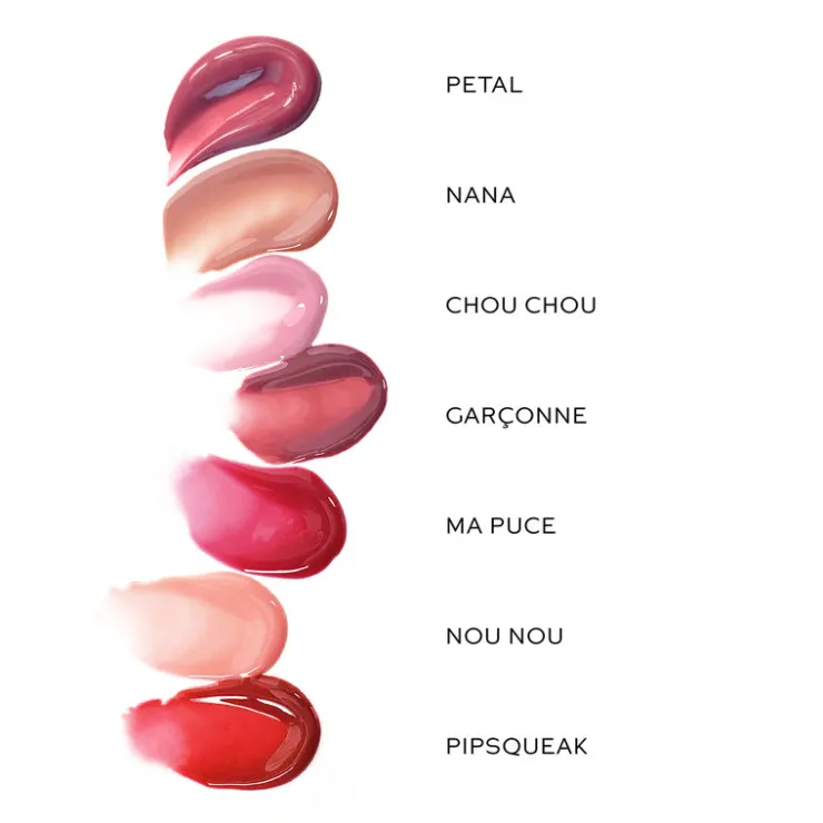 Garconne, Nana, Pipsqueak, Ma Puce, Nou Nou: Diisostearoyl Polyglyceryl-3 Dimer Dilinoleate, Ricinus Communis Seed Oil / Ricinus Communis (Castor) Seed Oil, Octyldodecanol, Prunus Amygdalus Dulcis Oil / Prunus Amygdalus Dulcis (Sweet Almond) Oil, Hydrogenated Vegetable Oil, Simmondsia Chinensis Seed Oil / Simmondsia Chinensis (Jojoba) Seed Oil, Mica, Parfum / Fragrance, Tocopherol, Butyrosper- Mum Parkii Butter / Butyrospermum Parkii (Shea Butter), Arcania Spinosa Kernel Oil, Helianthus Annuus Seed Oil / Helianthus Annuus (Sunflower) Seed Oil, Limonene, Citral, Linalool, Citronellol. May Contain (+/-): Cl 77891 / Titanium Dioxide, Cl 77491 / Iron Oxides, Cl 77492 / Iron Oxides, Cl 77499 / Iron Oxides, Cl 75470 / Carmine, Cl 77742 / Manganese Violet, Cl 15850 / Red 6. Chou Chou: Diisostearoyl Polyglyceryl-3 Dimer Dilinoleate, Ricinus Communis Seed Oil / Ricinus Communis (Castor) Seed Oil, Octyldodecanol, Prunus Amygdalus Dulcis Oil/ Prunus Amygdalus Dulcis (Sweet Almond) Oil, Hydrogenated Vegetable Oil, Simmondsia Chinensis Seed Oil / Simmondsia Chinensis (Jojoba) Seed Oil, Mica, Parfum / Fragrance, Tocopherol, Butyrospermum Parkii Butter / Butyrospermum Parkii (Shea Butter), Silica, Arcania Spinosa Kernel Oil, Helianthus Annuus Seed Oil / Helianthus Annuus (Sunflower) Seed Oil, Tin Oxide, Limonene, Citral, Linalool, Citronellol. May Contain (+/-): Cl 77891 / Titanium Dioxide, Cl 77492 / Iron Oxides, Cl 75470 / Carmine, Cl 77742 / Manganese Violet.
