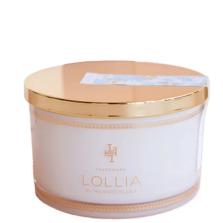 - Gold accents and a reflective lid add brilliant shine to this gorgeous glass jar and tub-side keepsake.