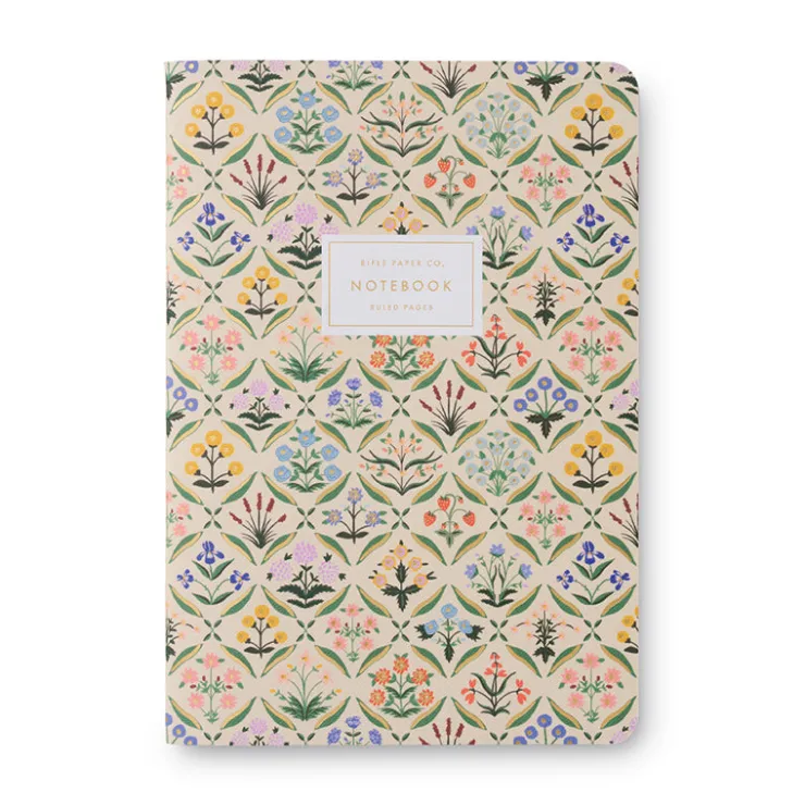 Good things come in threes, and Rifle Paper’s Stitched Notebook Set is no exception. Each bundle features three notebooks with full-color covers, stitched binding, gold foil accents, and 64 ruled pages.