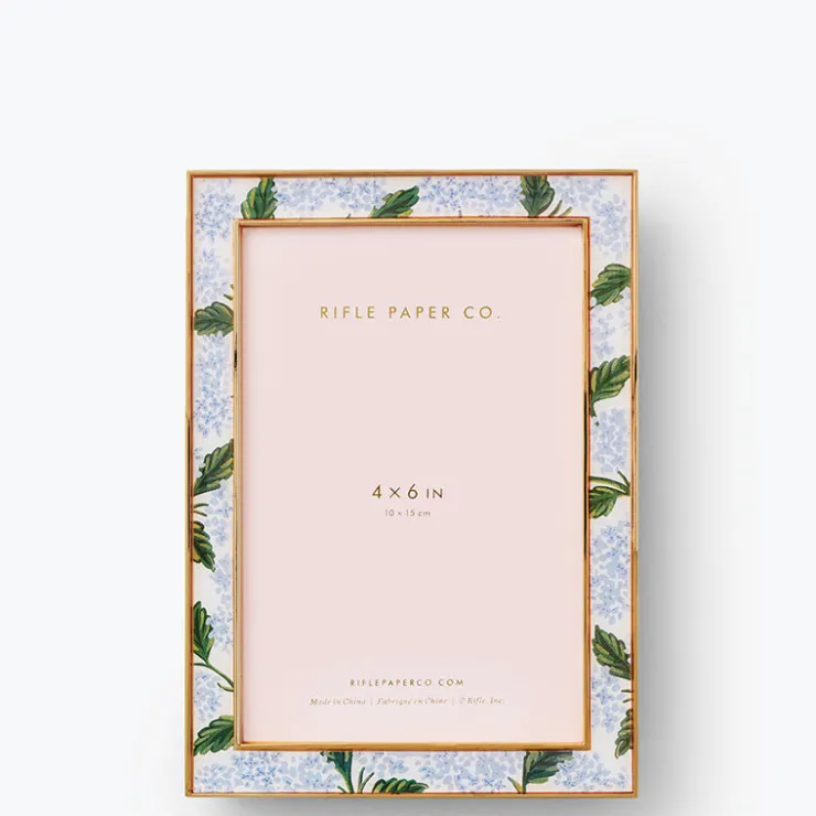 Graceful soft blue hydrangea print with gold edging on this picture frame.holds a 4×6 pictureRifle Paper Co. is a statio…