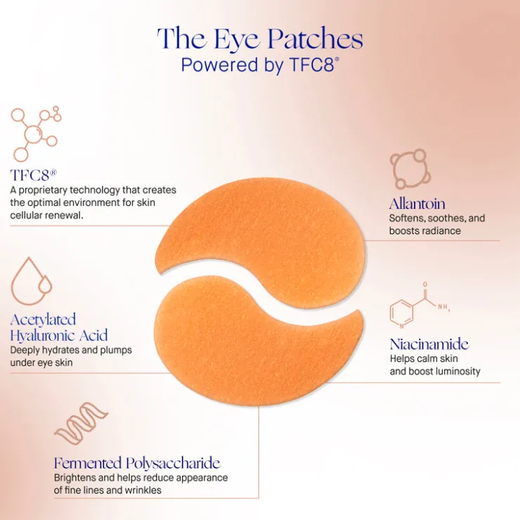 Revitalizing hydrogel eye patches that hydrate, brighten, and smooth, while reducing the appearance of dark circles, puffiness and fine lines and wrinkles. Powered by TFC8®.
