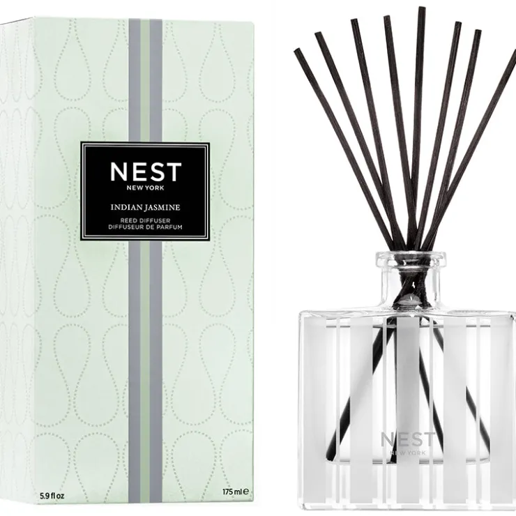Immerse yourself in the lush jasmine fields of India with this Reed Diffuser featuring an intense jasmine absolute surrounded by bright red berries, sparkling bergamot, and spicy pink pepper.