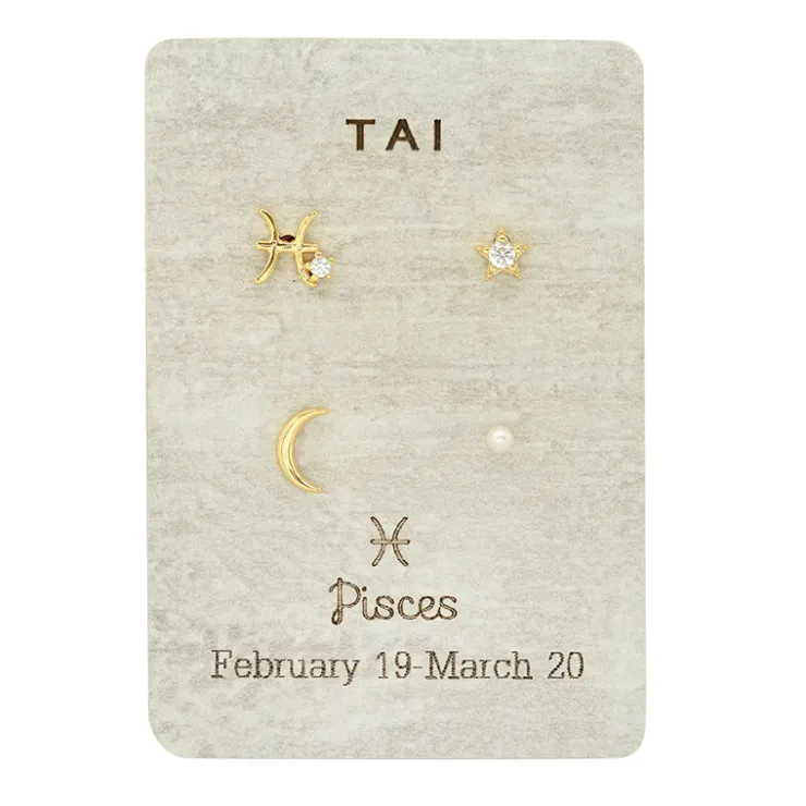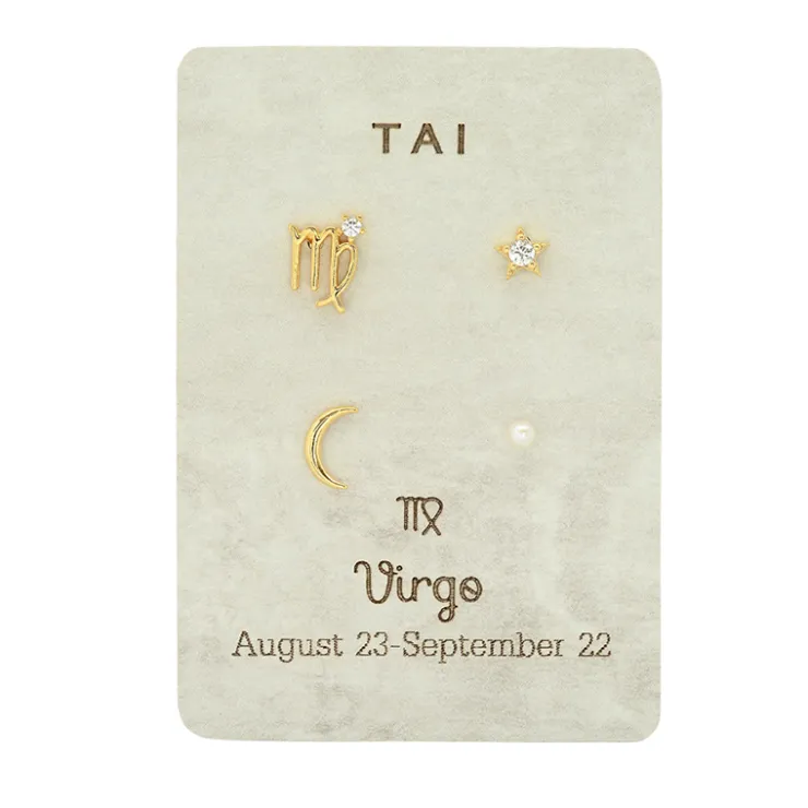 Mismatched stud pack that includes single zodiac sign stud, cz star, crescent moon and freshwater pearl studsGold plated…