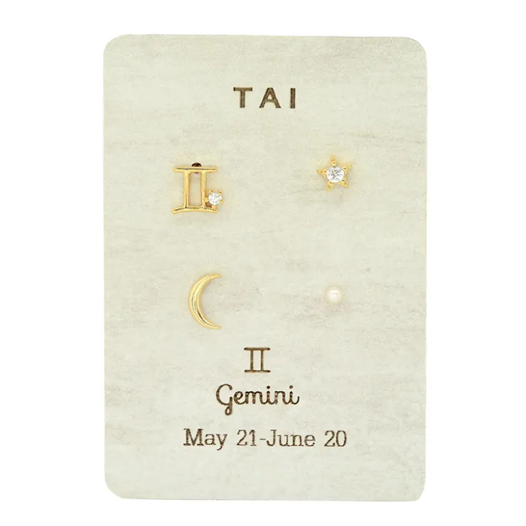 Mismatched stud pack that includes single zodiac sign stud, cz star, crescent moon and freshwater pearl studs
