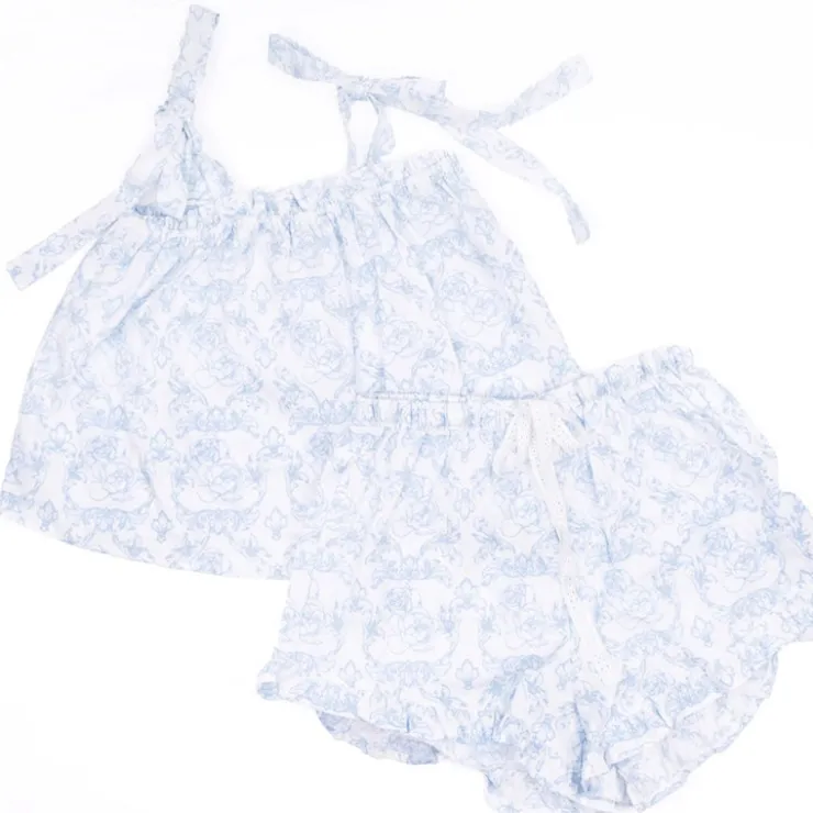Treat yourself or a loved one to an elegant sleep set with the French Rose Tie Top Sleep Set. Crafted from woven cotton, it promises comfort & style with a tie top tank & drawstring waist ruffle shorts for a cozy night’s sleep. With its eye-catching blue rose print, high-quality fabric, & airy silhouette, this sleep set will make it hard not to want to stay in bed all day! Put some luxury into your downtime with the French Rose Tie Top Sleep Set – you won’t regret it!