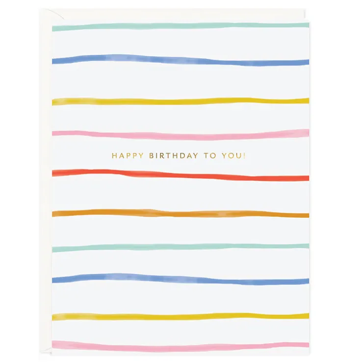 Colorful watercolor stripes pair with a simple gold foil message for the most special birthday celebrations.