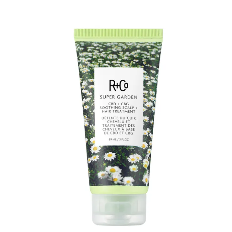 A sensorial journey for your scalp and hair, SUPER GARDEN CBD + CBG Soothing Scalp + Hair Treatment boasts a transforming texture. It starts as a rich butter that melts, when applied to the scalp and strands, into a luxuriously hydrating salve. The scalp is left balanced and soothed, while strands are nourished and softened.