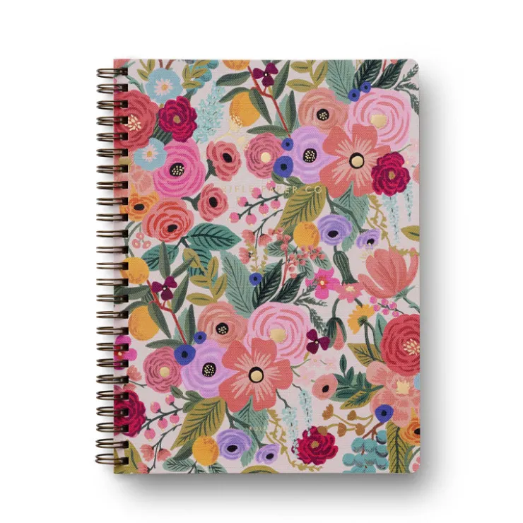 Hit the books with Rifle Paper’s new softcover spiral notebooks, featuring full-color covers with gold foil accents, printed on a heavy-weight textured paper. The notebook has 150 ruled pages, a sturdy double-spiral binding, and pockets for extra storage.