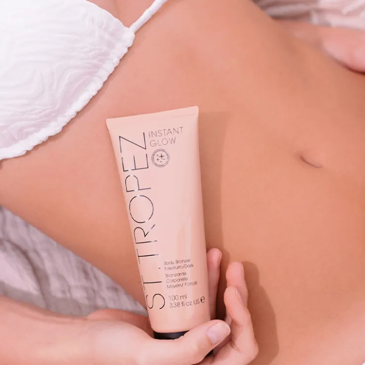 Give your skin an instant glow up with this next generation, no commitment body bronzer for an instant skin perfecting glow, that lasts all day with streak-free results that are transfer and water resistant. These easy-to-apply creme to powder body and face bronzers are best for those looking for a quick fix or instant results with no commitment or for nervous tanners seeking a risk-free temporary glow up. Simply apply with an Applicator Mitt for streak-free results and rinse off as desired.