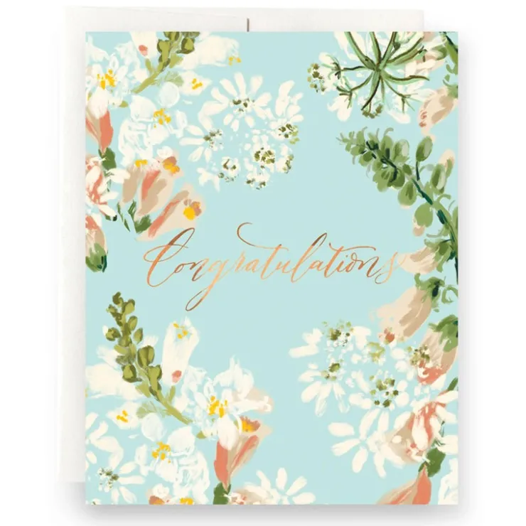 Full color printed folded card with blank interior and cream envelope