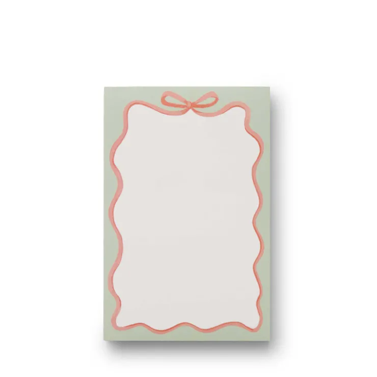 Blank pages, full of possibility. Jot down notes, to-dos, grocery lists, and musings on these tear-off sheets, trimmed with a mint border and a sweet illustrated ribbon.