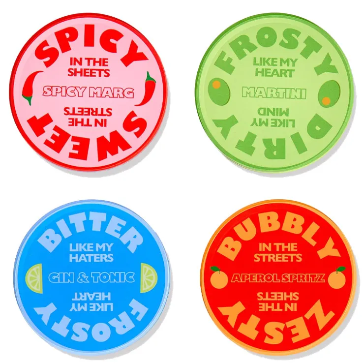Cheers to all of your favorite drinks! These cocktail coasters are perfect for protecting your surfaces while sipping on your fav cocktail! Each coaster has a design on the front and the back- double the designs= double the fun! Drink up!