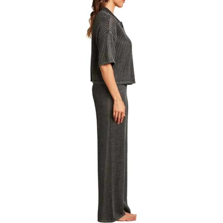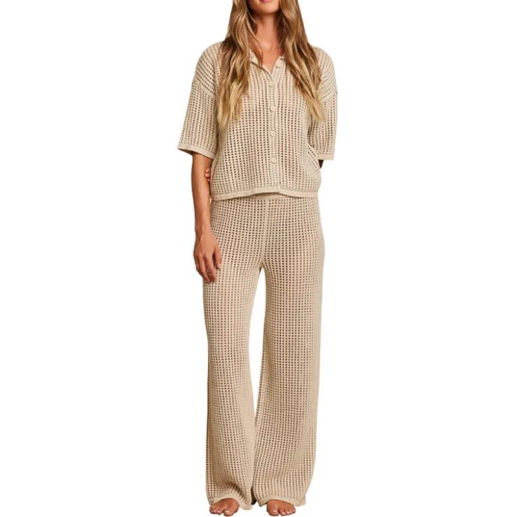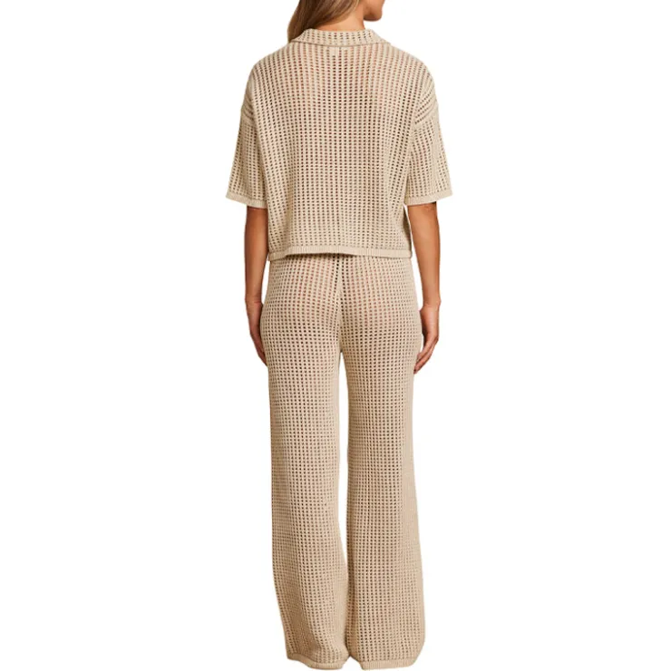 The Sunbleached Buttoned Short Sleeve shirt features a button-up collared design and an eye-catching all-over open stitch crochet pattern. With a ribbed finish at the sleeve and bottom openings, this shirt offers both style and comfort. Crafted with a vintage-inspired look, this shirt is perfect for any occasion. Pairs perfectly with the Sunbleached Pant.