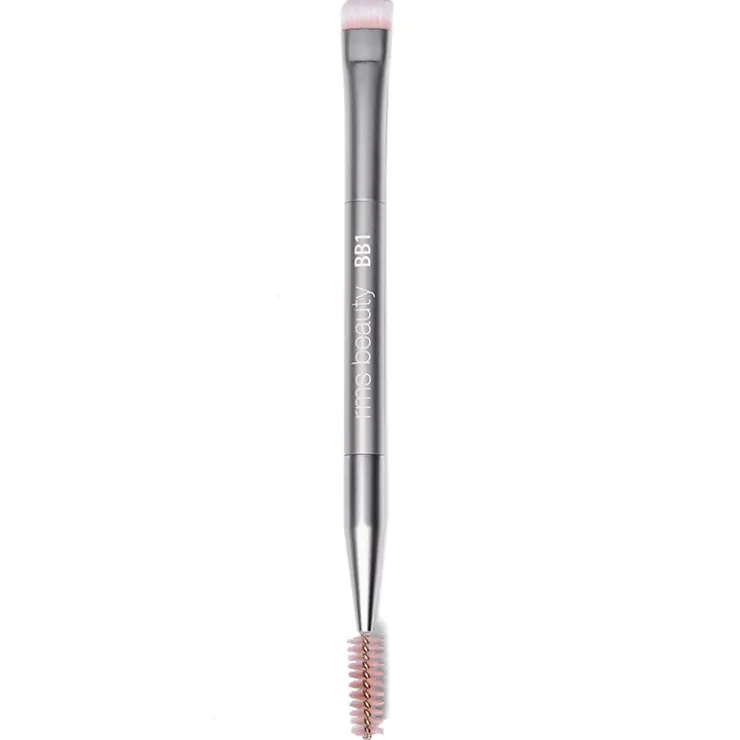 Begin with the spoolie end to brush out brows – Use the brush end to sweep on back2brow powder from the beginning of the brow upward to the arch and down through the tail – Go back in with the spoolie to soften and further shape