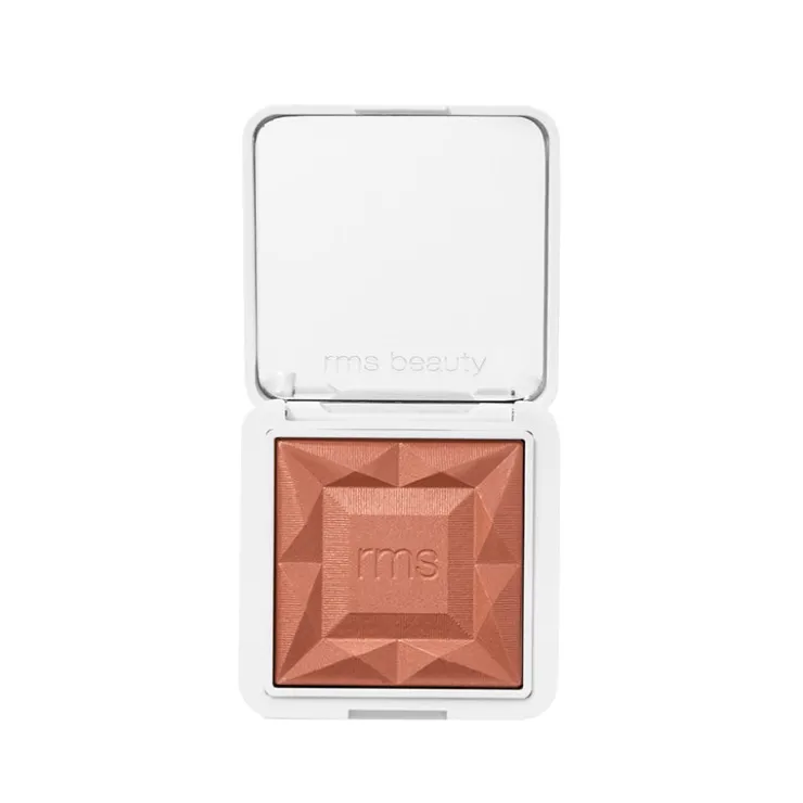 - Using rms skin2skin powder blush brush, apply to the apples of cheeks.