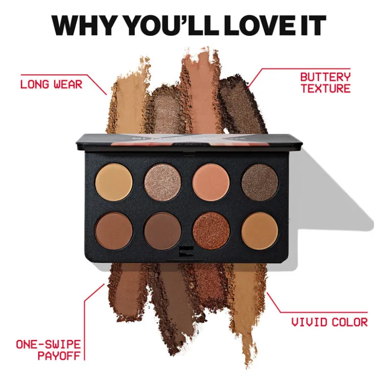 A high-pigment, high-performance longwearing eye shadow palette. Stacked with cushiony velvet mattes, finely milled metallics, and rich-reflect shimmers, this vegan and cruelty-free eight-shade all-in-one is curated to create infinite looks and express any mood.