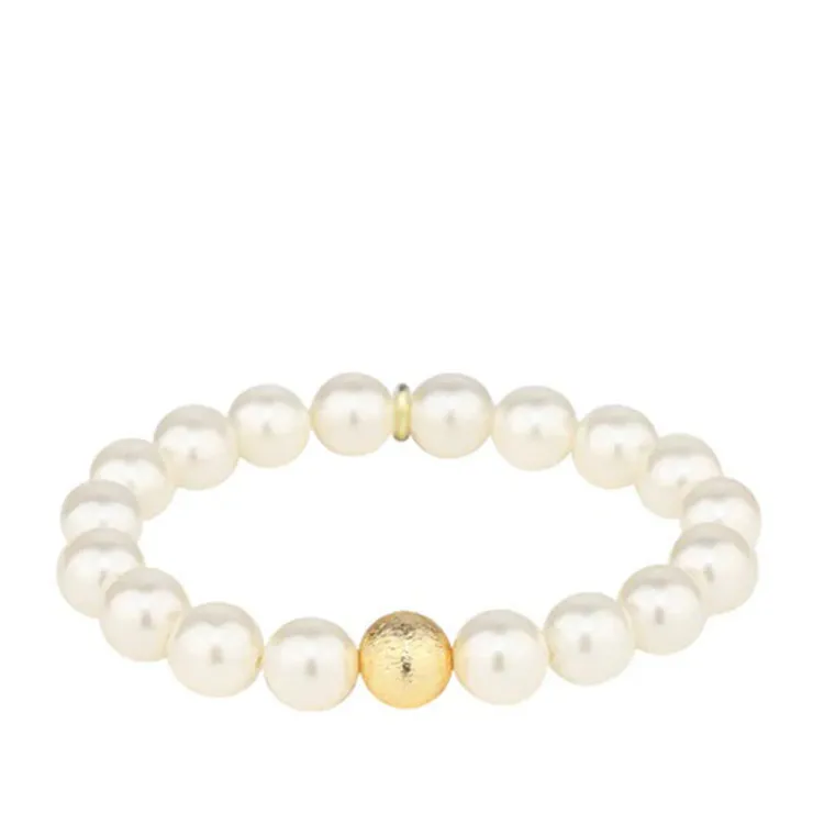 Gorgeous 10mm snowy-white lustrous pearls are highlighted by BuDhaGirl’s famous brushed gold marker bead. An instant classic that no wardrobe should be without.