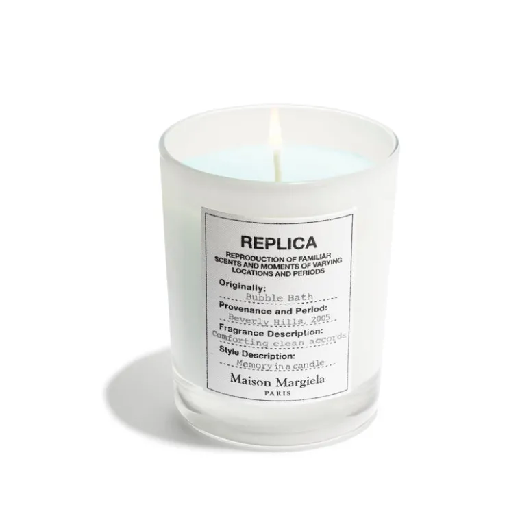 With their precious white glass adorned with the iconic REPLICA fabric label, the candles will beautifully light up your home. Each luxury candle has a specific colored wax, reminiscent of the scented memory it will take you back to.