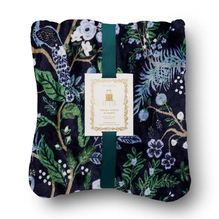 Make your adventures a little more cozy with a fleece blanket specifically designed for travel. The blanket folds into an attached pocket and becomes a travel pillow with a convenient trolley sleeve. Featuring Rifle Paper’s lush Peacock print, the plush fleece blanket comes packaged with a ribbon so it’s ready to gift.