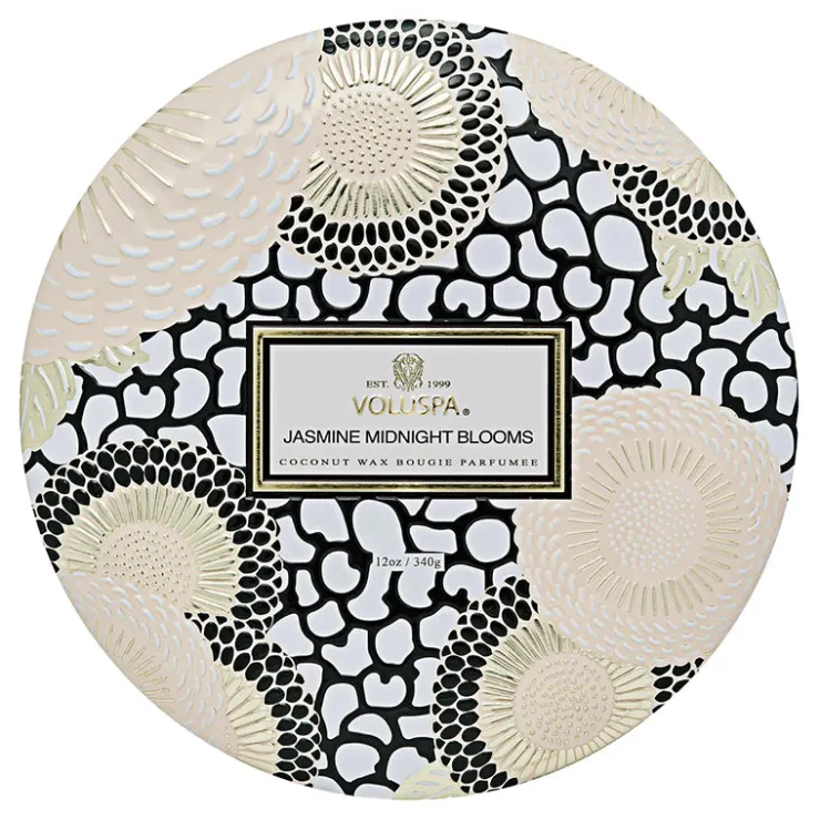 Voluspa’s unique coconut wax blend is hand-poured into a 12 oz. metal vessel adorned in Japonica pattern and topped with a matching lid that keeps the candle dust-free when not in use.