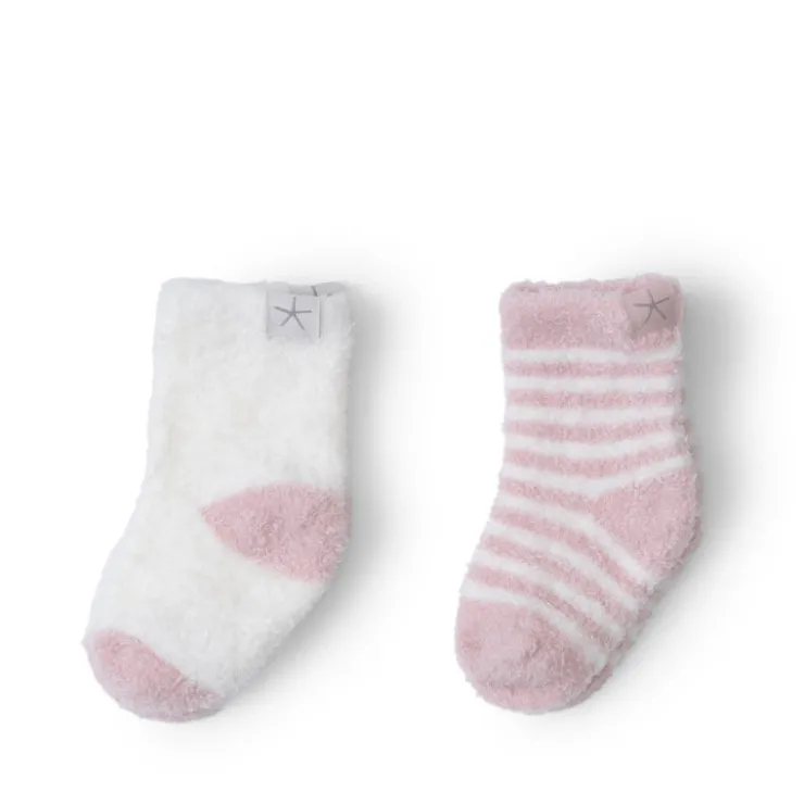 Introduce your baby to ultimate comfort with Cozychic Lite® Baby Heart Sock Set. This 2 pack sock set includes a jersey/jacquard striped sock and a jersey stitch sock with a jacquard heart detail at the ankle, plus contrast colored heels and toes.