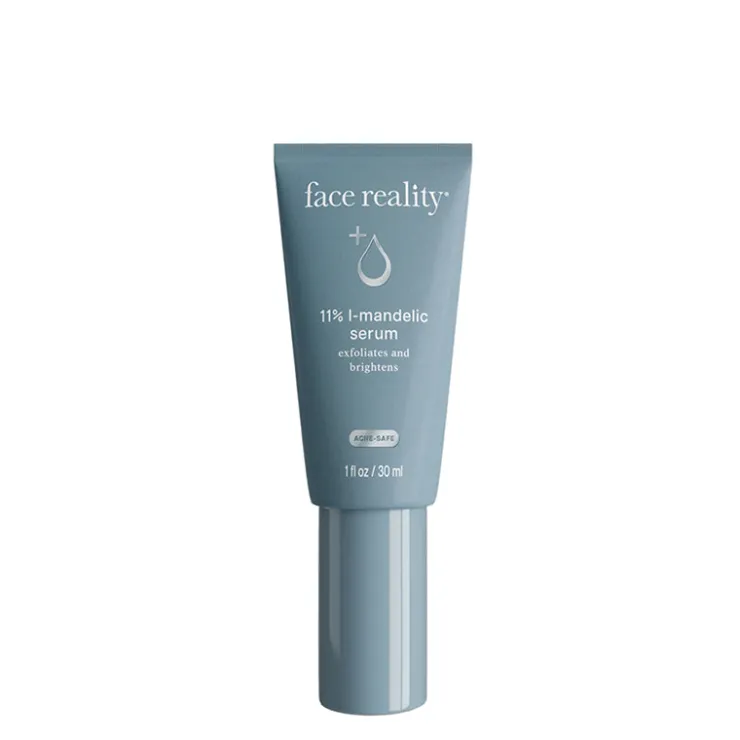 An alpha hydroxy acid serum that contains the chirally correct versions of both l-mandelic acid and l-lactic acid. L-Mandelic acid has a larger molecular weight than other alpha hydroxy acids slowing down epidermal penetration resulting in a more even exfoliation with less irritation.