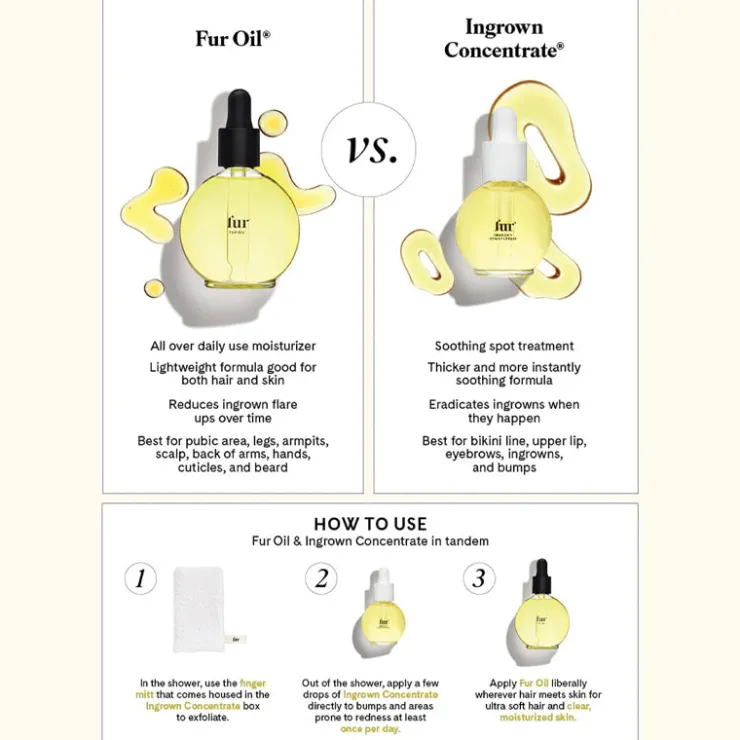 Whether you shave, wax, laser, or go au naturale, Fur products play well with any haircare routine. All of Fur’s super gentle formulas are packed with high quality ingredients to soothe and smooth skin to treat and prevent ingrowns, while softening hair and refining regrowth.