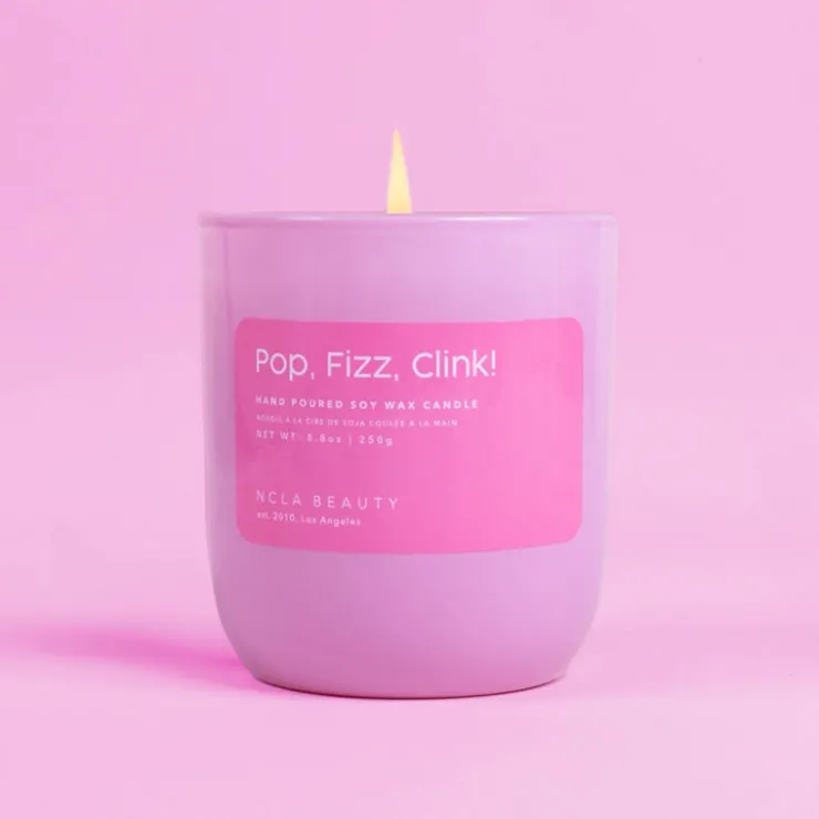 This relaxing pink champagne soy wax candle has fragrance notes of strawberry, raspberry, sugar accord, and vanilla bean.