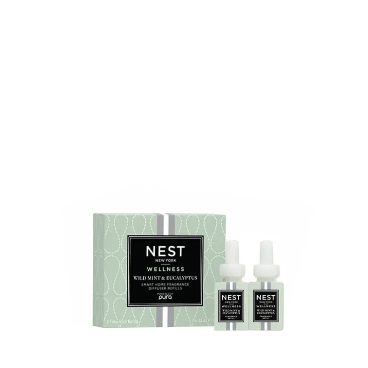 Refills fit inside the NEST Fragrances Smart Home Diffuser powered by Pura. The device connects to your phone, allowing you to set your scent schedule, swap between scents, and adjust intensity from anywhere.