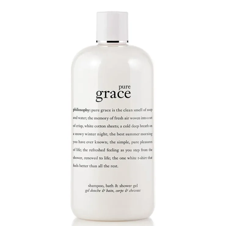 Infinitely clean, soap and water scent skin feels luxuriously soft and hydrated. Wrap yourself in the soap and water scent of pure grace shampoo, bath & shower gel, a 3-in-1 formula that gently cleanses and conditions sin and hair. An infinitely clean scent of a veil of water lily with a subtle freshness, the simple, modern tones of leafy greens and frosted musk brings a refreshing finish.
