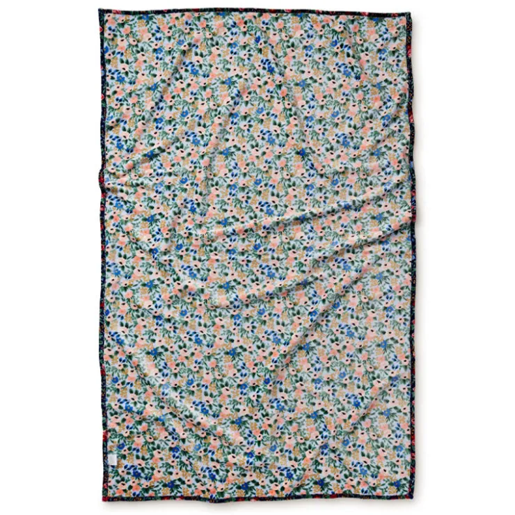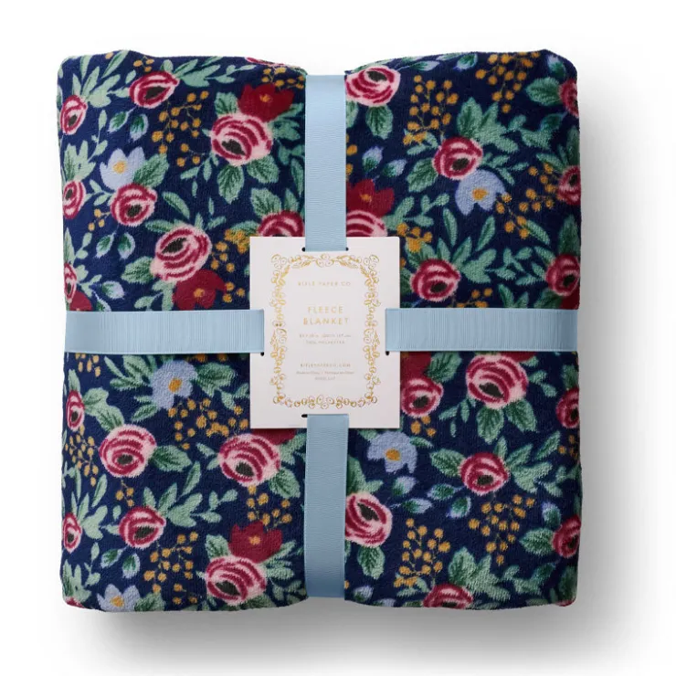 Curl up with a reversible fleece blanket featuring the Rosa floral print, a re-colored version of a design pulled from our archive. Made of plush fleece, the blanket comes packaged with a ribbon so it’s ready to gift.