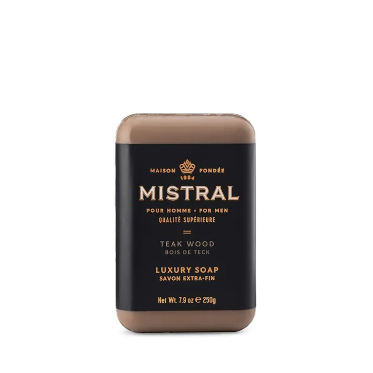 Rich in hydrating grapeseed oil and glycerin, Mistral’s authentic triple-milled soap moisturizes the skin and leaves a bold fragrance behind.