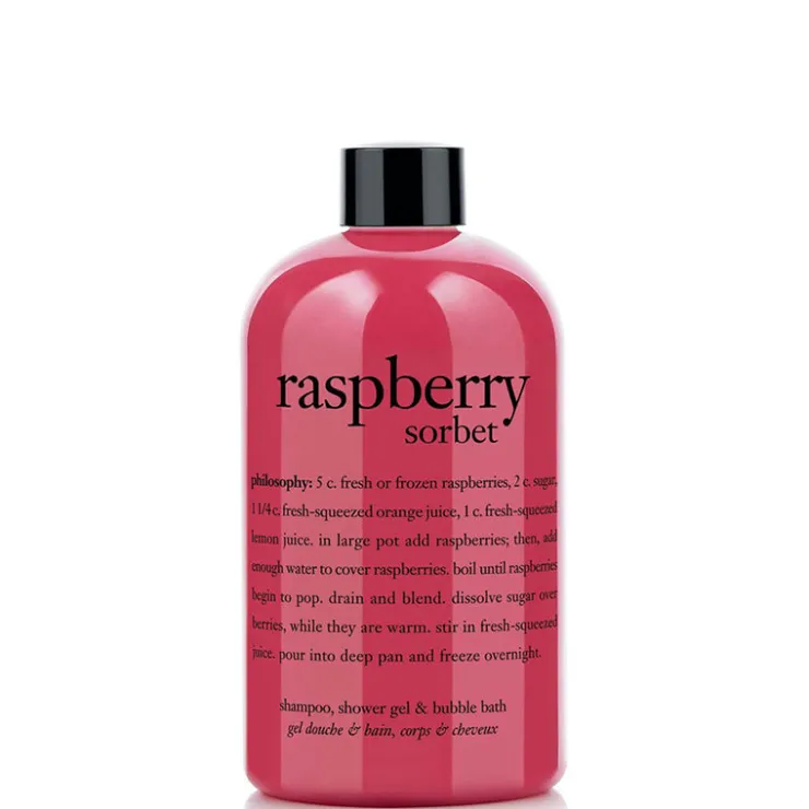 Go ahead and splurge during the shower or bath with the luscious, positively refreshing raspberry sorbet. This multitasking, 3-in-1 shampoo, shower gel & bubble bath cleanses and conditions, leaving skin and hair feeling ultra soft. The rich, foaming lather surrounds you in the absoluteley delicious scent of raspberry sorbet to bring you pure joy during your daily cleaning routine.