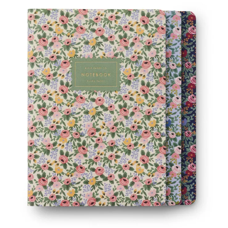 Good things come in threes, and Rifle Paper’s Stitched Notebook Set is no exception. Each bundle features three notebooks with full-color covers, stitched binding, gold foil accents, and 64 ruled pages.
